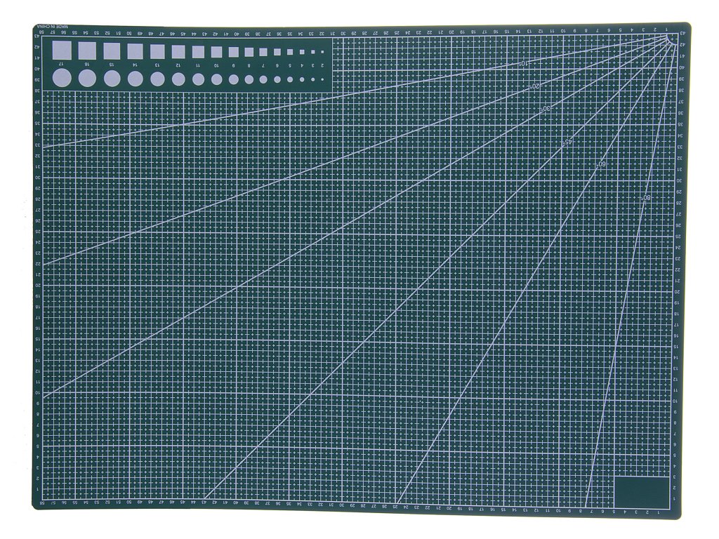 Podložka k řezání látek, plstí nebo papíru k výrobě patchworkových modelů. Řezat můžete pomocí řezacího kolečka nebo nožů. Podložka je oboustranná. Ideální pro přesné měření a rychlé řezání. Chrání povrchy před poškrábáním, lepidly nebo znečištěním. Dlouhá životnost. Centimetrová mřížka, pomocké linky, úhlová stupnice a geometrické tvary různých velikostí. Síla podložky je 3mm. Celkový rozměr podložky je 45 x 60cm.Doplňkové parametry