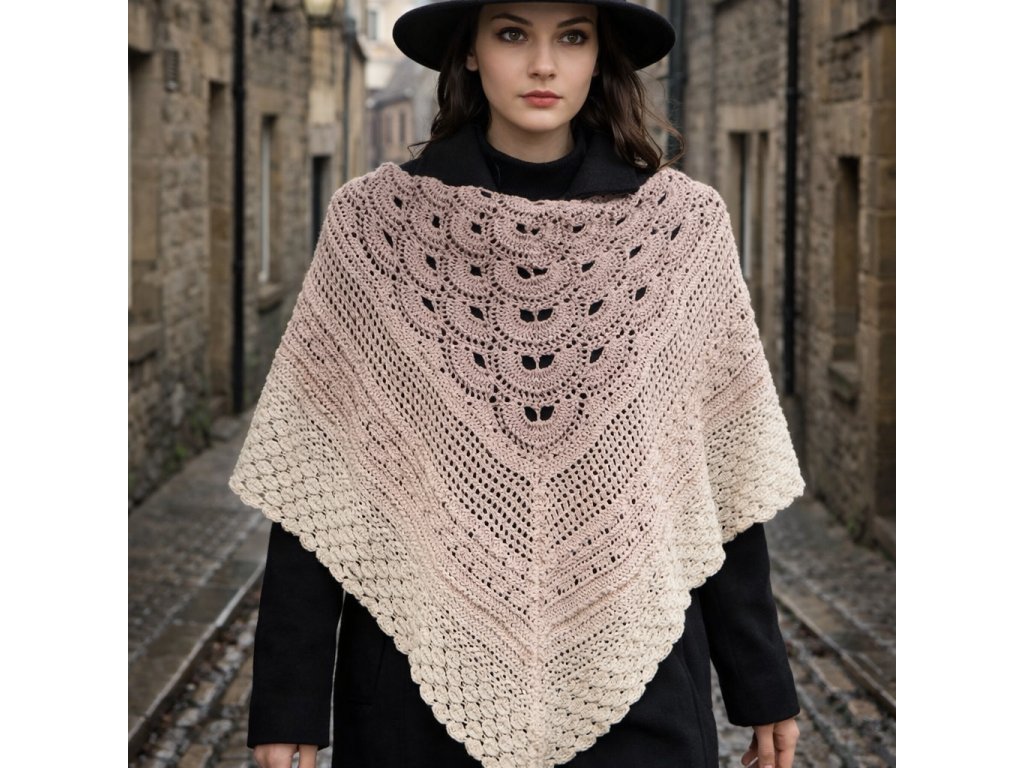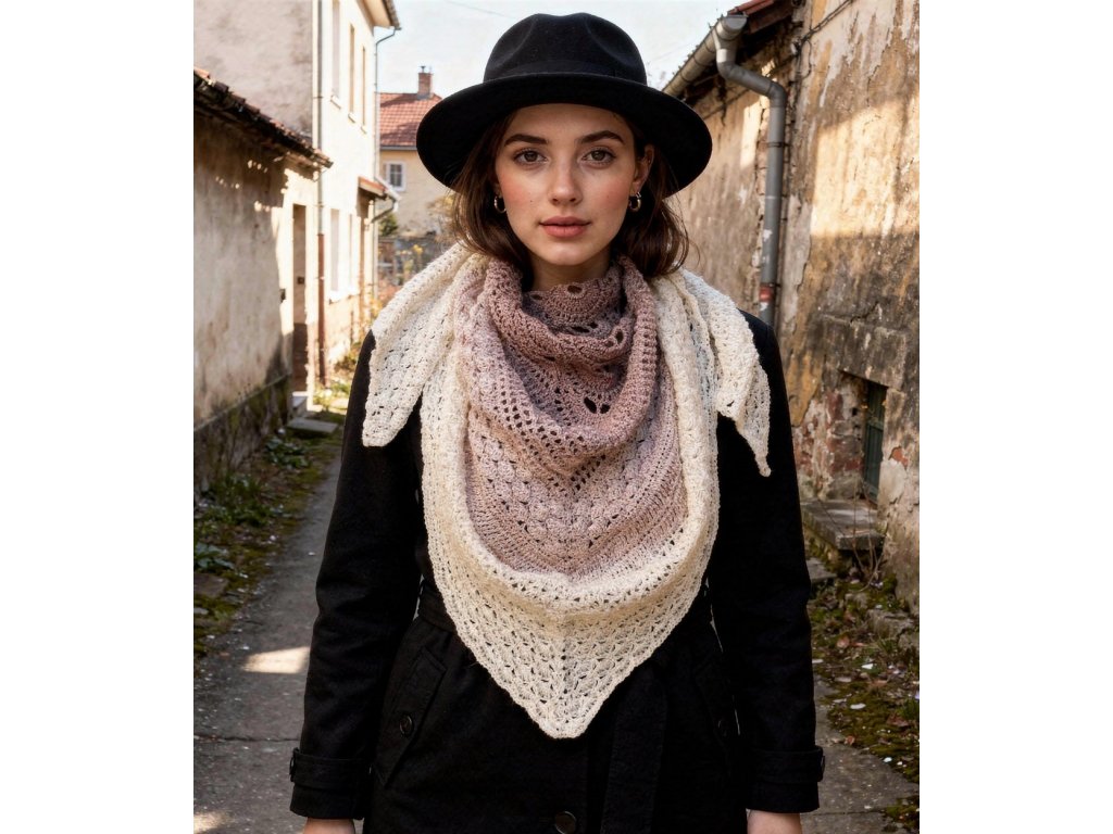 Jemně vzorovaný velký šátek z příjemné příze Dolly ombre v decentní béžovo-hnědém odstínu.