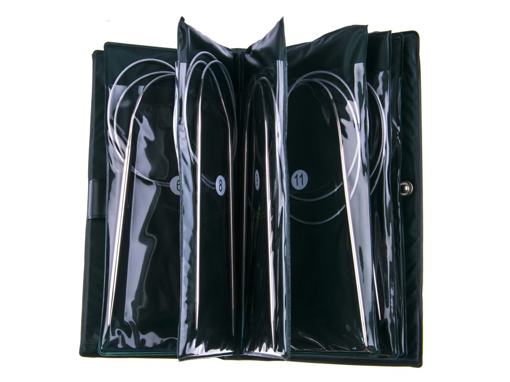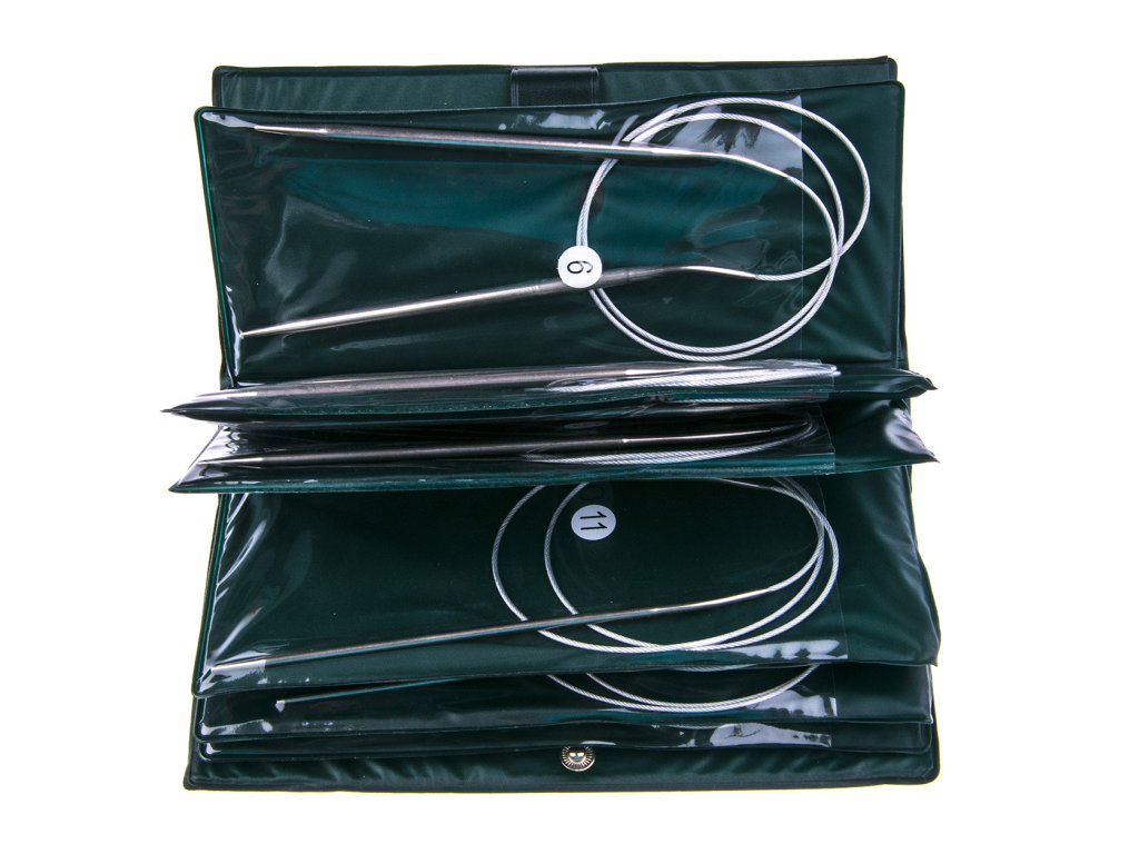 Sada kovových kruhových jehlic v délce 80cm. Obsahuje: kovové jehlice velikost 1,5 - 1,75 - 2 - 2,25 - 2,5 - 3 - 3,5 - 4 - 4,5 - 4,75 - 5, 1x oboustranný háček, plastová jehla a 10 ks pomocných špendlíků.Doplňkové parametry