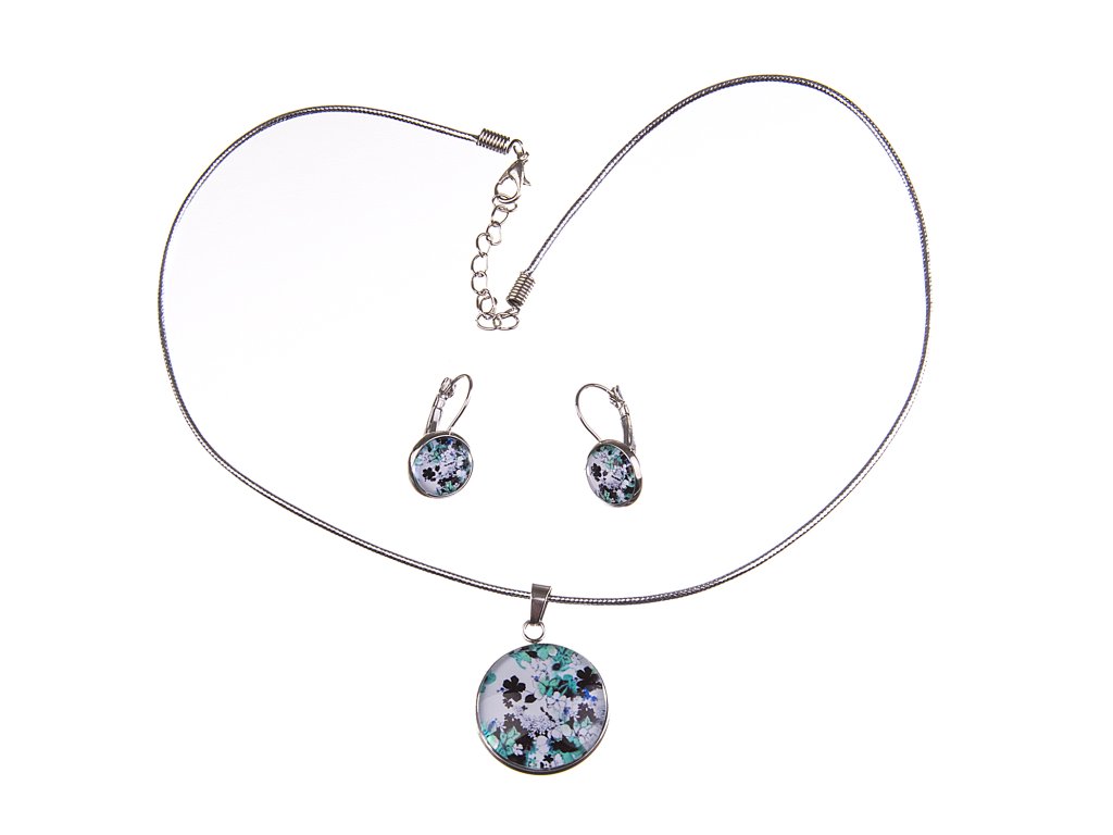 Set náhrdelníku a a závěsných náušnic. Obvod řetízku je 50cm. Náhrdelník o průměru 25mm. Náušnice o průměru 13mm.Doplňkové parametry