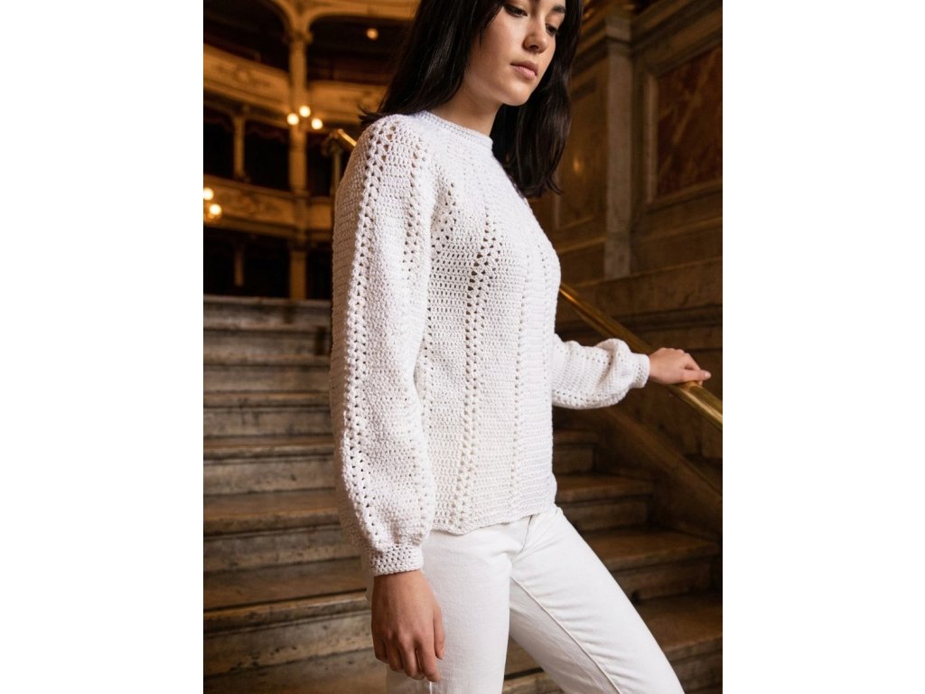 Háčkovaný biely sveter EDEN