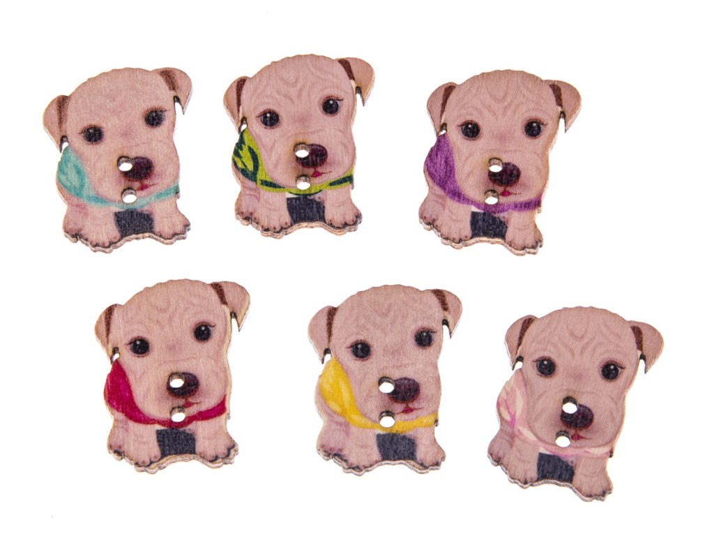 Drevený gombík v tvare psa s veľkosťou 27mm. Predaj náhodného mixe farieb. Cena za 1 kus.Dodatočné parametre