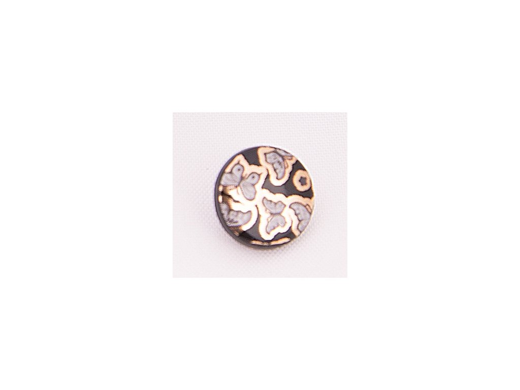 Gombík 11 mm čierno-zlatý s bielymi motýľmi