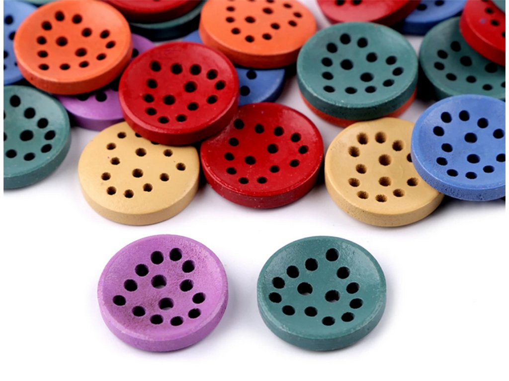 Drevený gombík o veľkosti 20mm, vďaka efektnému dierovaniu môžete ozdobiť výšivkou alebo inou dekoráciou. Predaj náhodného mixu farieb. Tieto dekoračné gombíky sú vhodné ako zapínacie gombíky, ozdoba na oblečenie, pletené veci - čiapky, šály, ponožky, podkolenky, dekorácie na taštičky, látkové aj papierové dekoračné predmety, scrapbook, šperky,...Dodatočné parametre