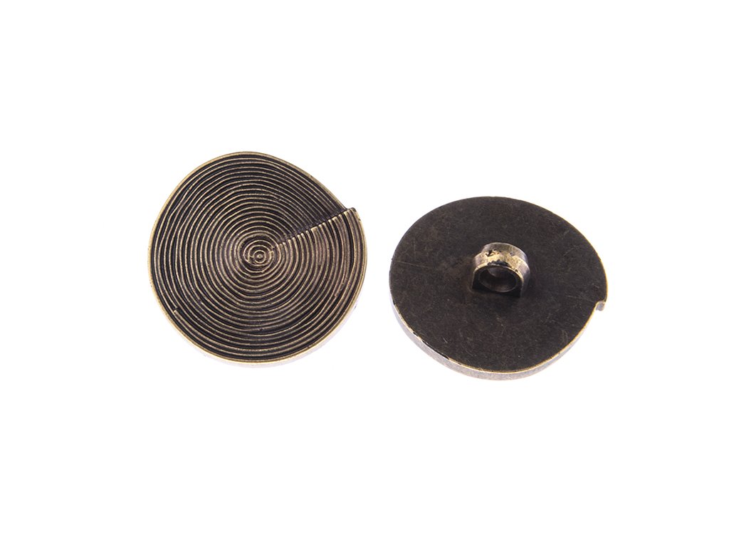 Plastový gombík s povrchovou úpravou vo farbe kovu ø 34mm, k prišitiu i dekoráciu. Na zadnej strane očko k prišitiu.Dodatočné parametre