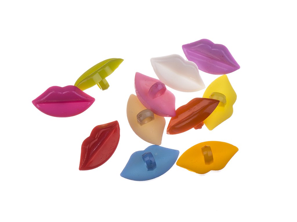 Plastový gombík v tvare pier vhodný na prišitie aj dekoráciu. Na zadnej strane očko na prišitie.Dodatočné parametre