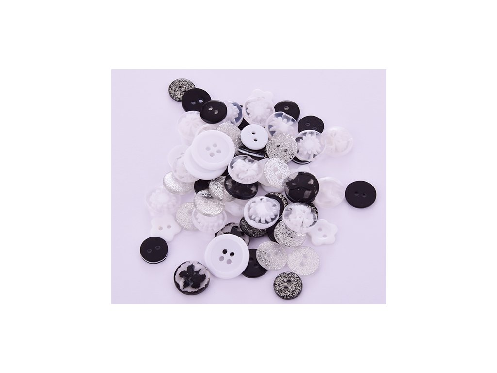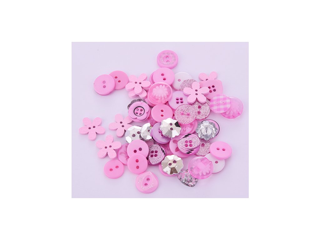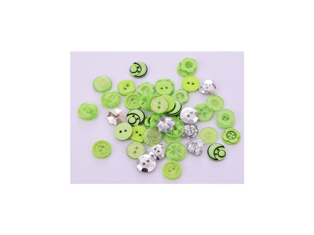 Plastové knoflíky různých tvarů a velikostí._x000D_ Cena je uvedena za 1 balení, ve kterém je 100 - 130 ks knoflíků._x000D_ Velikost knoflíků je 10 - 15 mm.