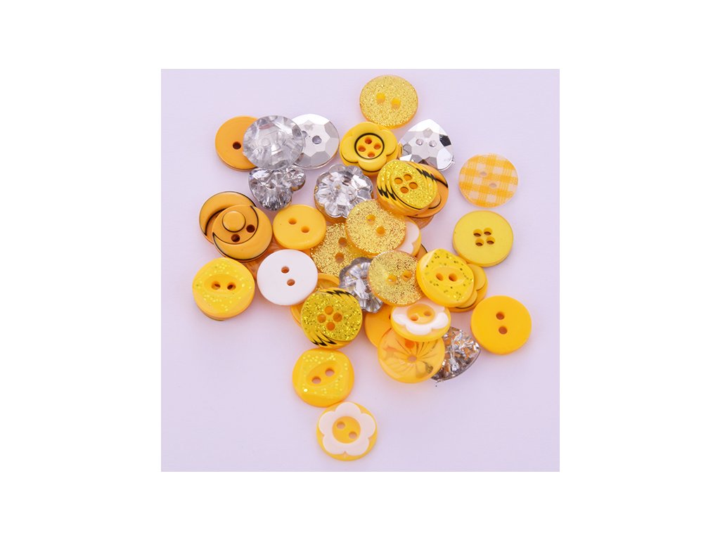Plastové knoflíky různých tvarů a velikostí. Cena je uvedena za 1 balení, ve kterém je 100 - 130 ks knoflíků. Velikost knoflíků je 10 - 15 mm.