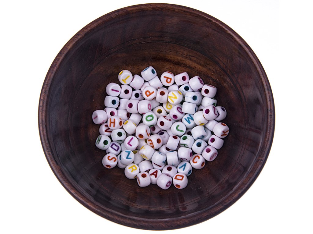 Plastové korálky s farebnými písmenami. Balenie obsahuje 100 kusov.Dodatočné parametre