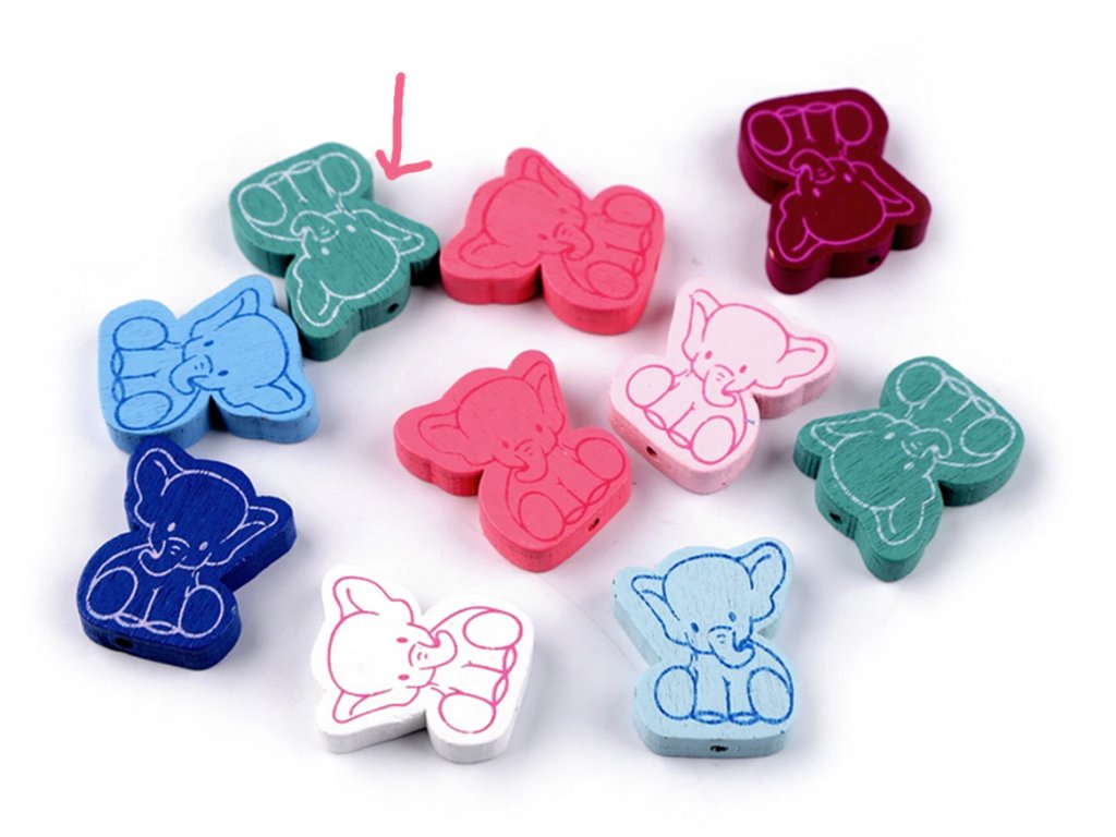 Drevený korálek slon vo farebnom prevedení vhodný na výrobu bižutérie, dekorácií,....Dodatočné parametre