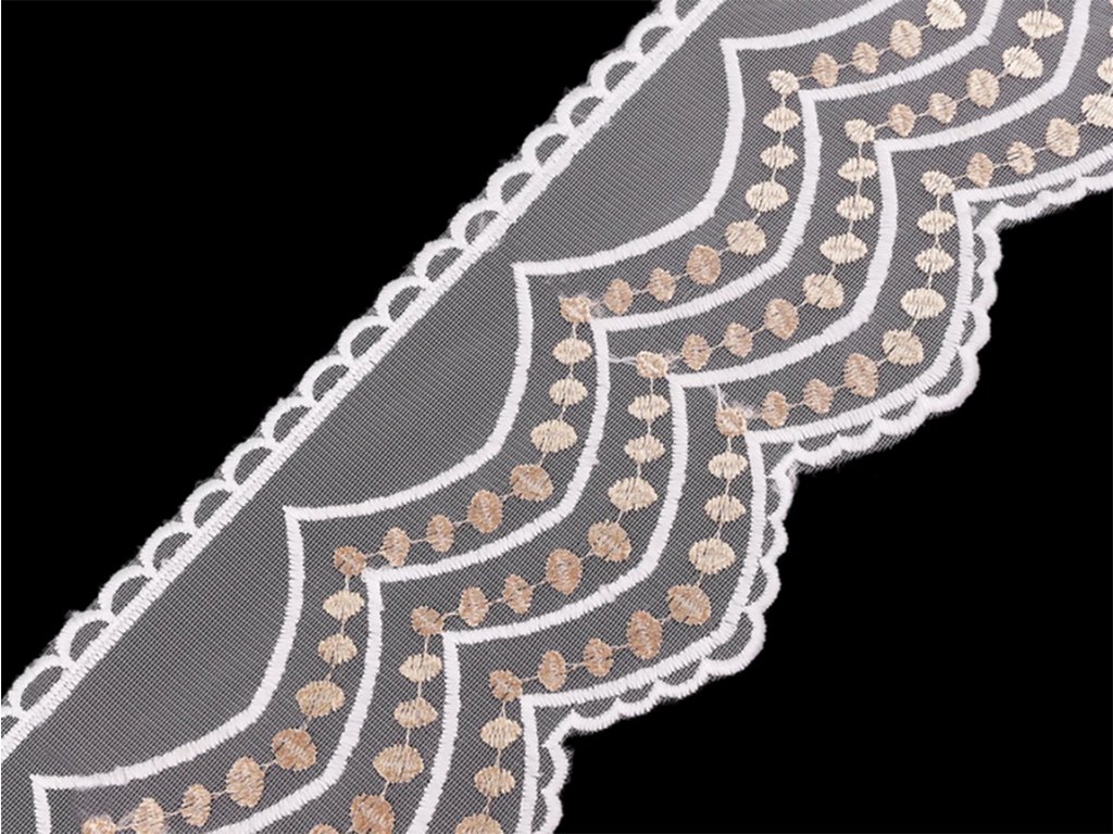 Polyesterová čipka vhodná na olemovanie a zdobenie vankúšov, obrusov a odevov. Cena je uvedená za 1 m. Odmeriame požadované množstvo.Dodatočné parametre