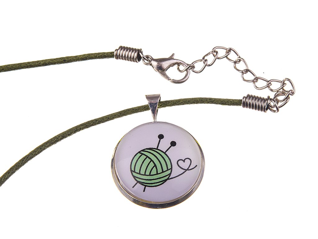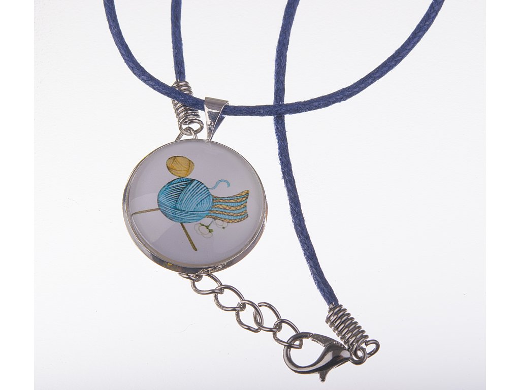 Náhrdelník cabochon s motívmi klbek na voskované šnúrke s kovovým zapínaním. Dĺžka náhrdelníka je 25 cm.Dodatočné parametre