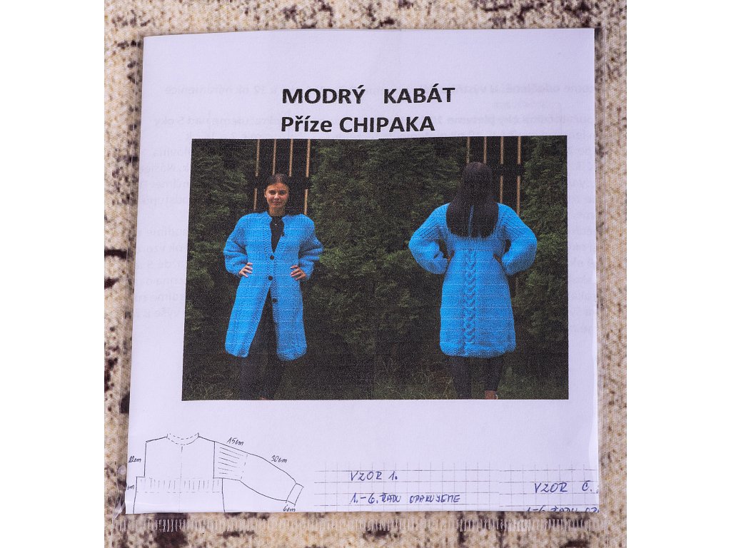 Podrobný popis v tlačenej podobe na výrobu originálneho kabátu z priadze Chipaka.Dodatočné parametre