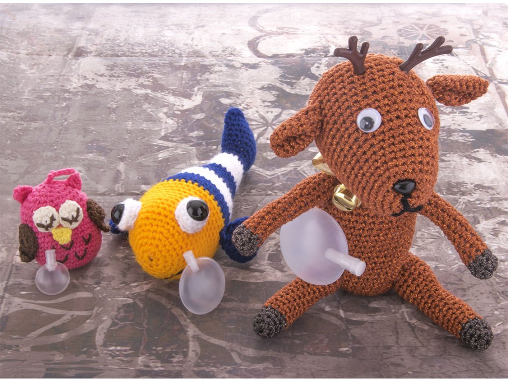 Pokud chcete ozvučit vaše háčkované hračky, zašijte jim do bříška mačkací pískátko. Lze ho voperovat i již hotovým uháčkovaným tvorům, ale lepší je ho dát dovnitř při výrobě. Každá ušetřená anestezie dobrá :-)