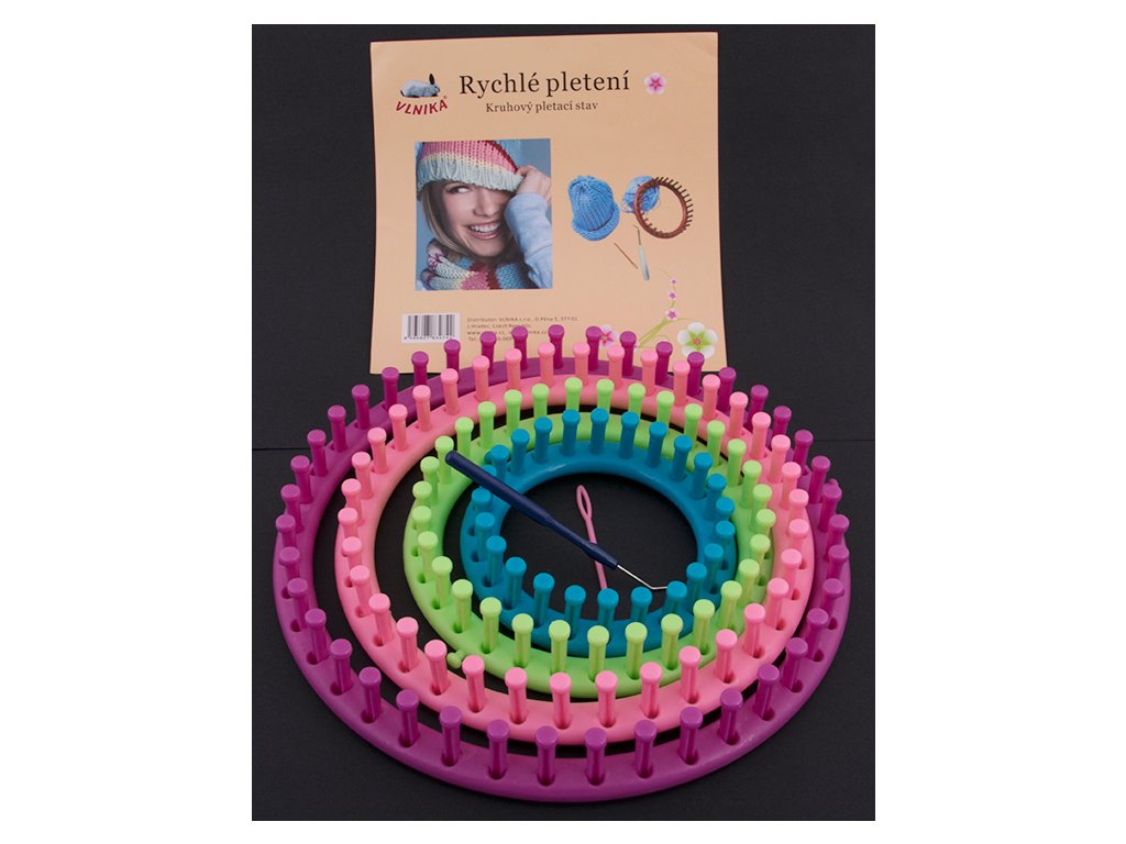 Pletací stav na výrobu čiapok. V 1 balení sú 4 stavy v priemeroch 13 cm, 18 cm, 23 cm, 28 cm a návod, ako upliesť na stave čiapku.Dodatočné parametre