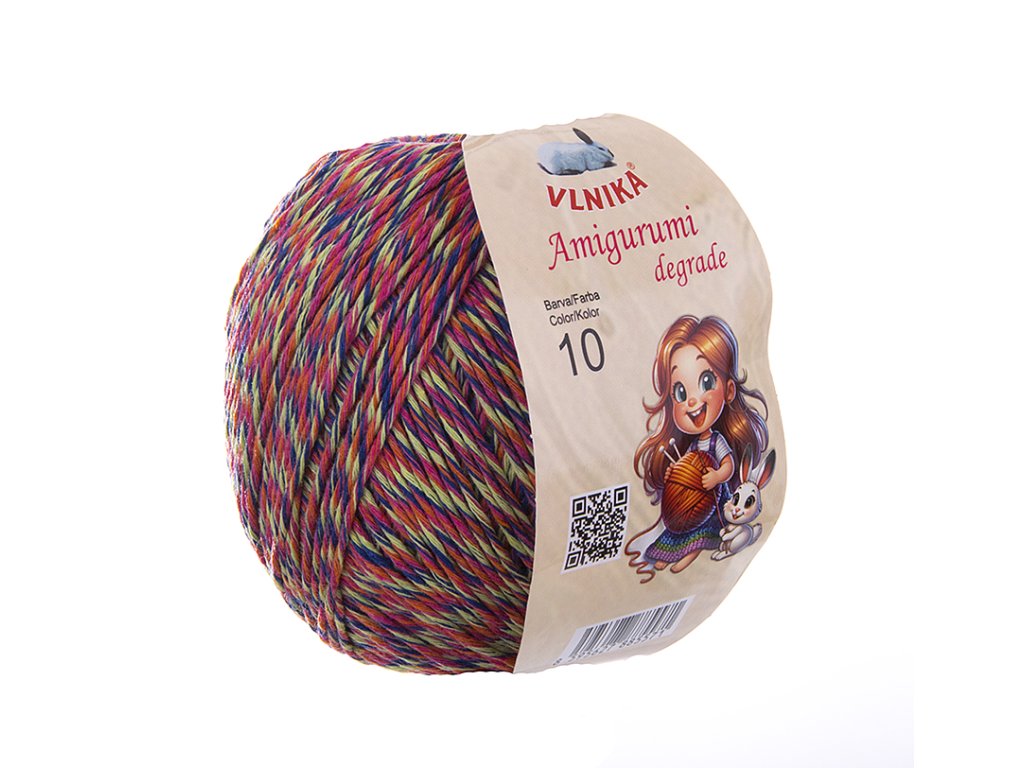 Úžasne vyfarbená zmesová priadza bavlny a polyesteru. Perfektný na pletenie aj háčkovanie ľahších modelov i rôznych doplnkov, postavičiek atď.Dodatočné parametre