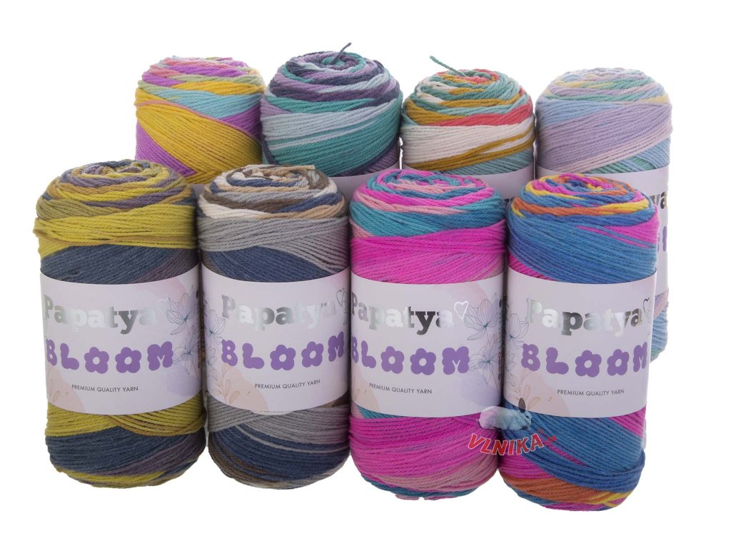 Papatya Bloom je krásna viacfarebná zmes bavlny a akrylu, ideálna na pletenie letných odevov a doplnkov. Jej rozmanité farebné prevedenie umožňuje vytvárať nadčasové pletené alebo háčkované vzory. S len niekoľkými klbkami môžete vytvoriť očarujúce šály alebo topy.Dodatočné parametre