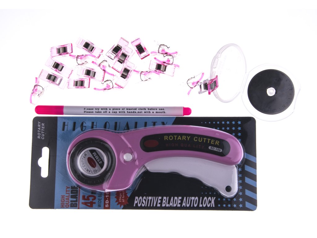 Vhodné na rezanie vzorov z textilu, kože alebo papiera. Obľúbené pri patchworku aj rezaní viacerých vrstiev látky. Balenie obsahuje: 5 ks náhradné koliesko, značkovacia fixka, 20 ks kolíkov na prichytenie rezacieho materiálu. Rozmer: 16 x 6 cmDodatočné parametre