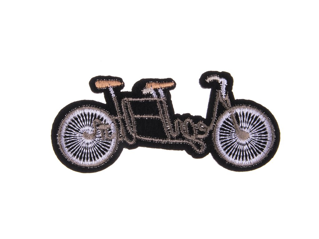 Textilná nažehlovačka v tvare dvojbicykela , vhodná k oprave oblečenia, ale aj na zdobenie odevov - detské zástery, batohy, čiapky a pod. Záplatu môžete nažehliť, prišiť alebo prilepiť.Dodatočné parametre