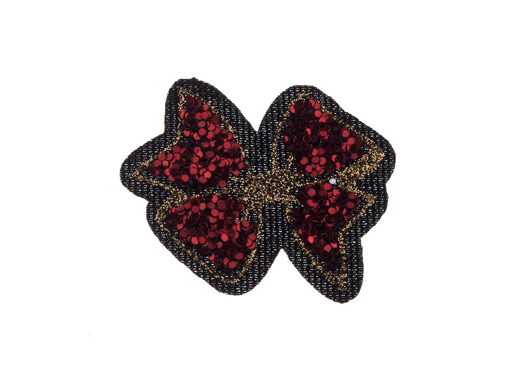 Textilná nažehlovačka v tvare mašle, vhodná k oprave oblečenia, ale aj na zdobenie odevov - detské zástery, batohy, čiapky a pod. Záplatu môžete nažehliť, prišiť alebo prilepiť.Dodatočné parametre