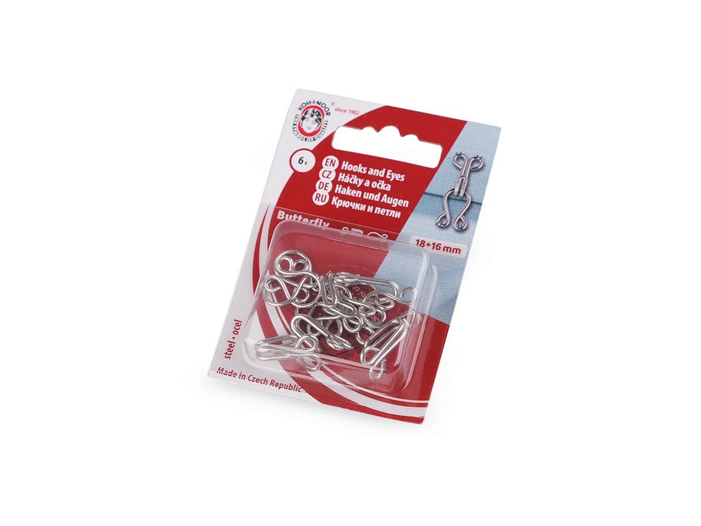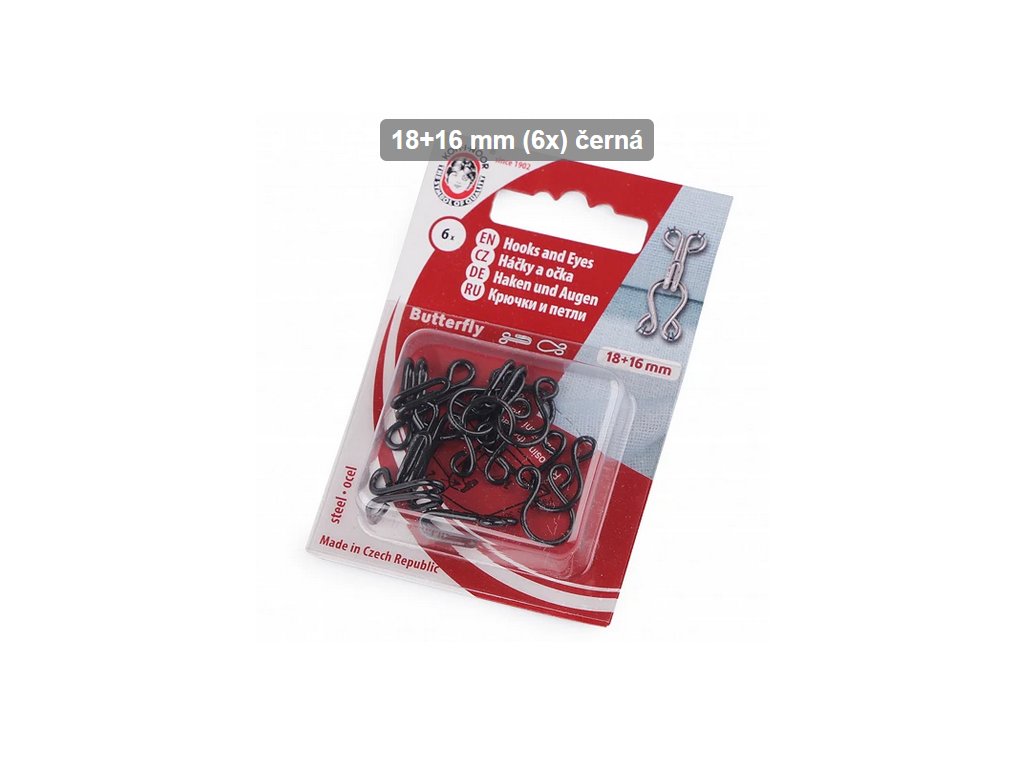 Velikost 16+18 mm, délka očka 16 mm, délka háčku 18 mm