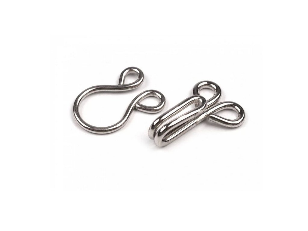 Zapínání na háček a očko je vyrobeno z magnetizujícího kovu. Používá se na oděvy a připevňuje se přišitím.